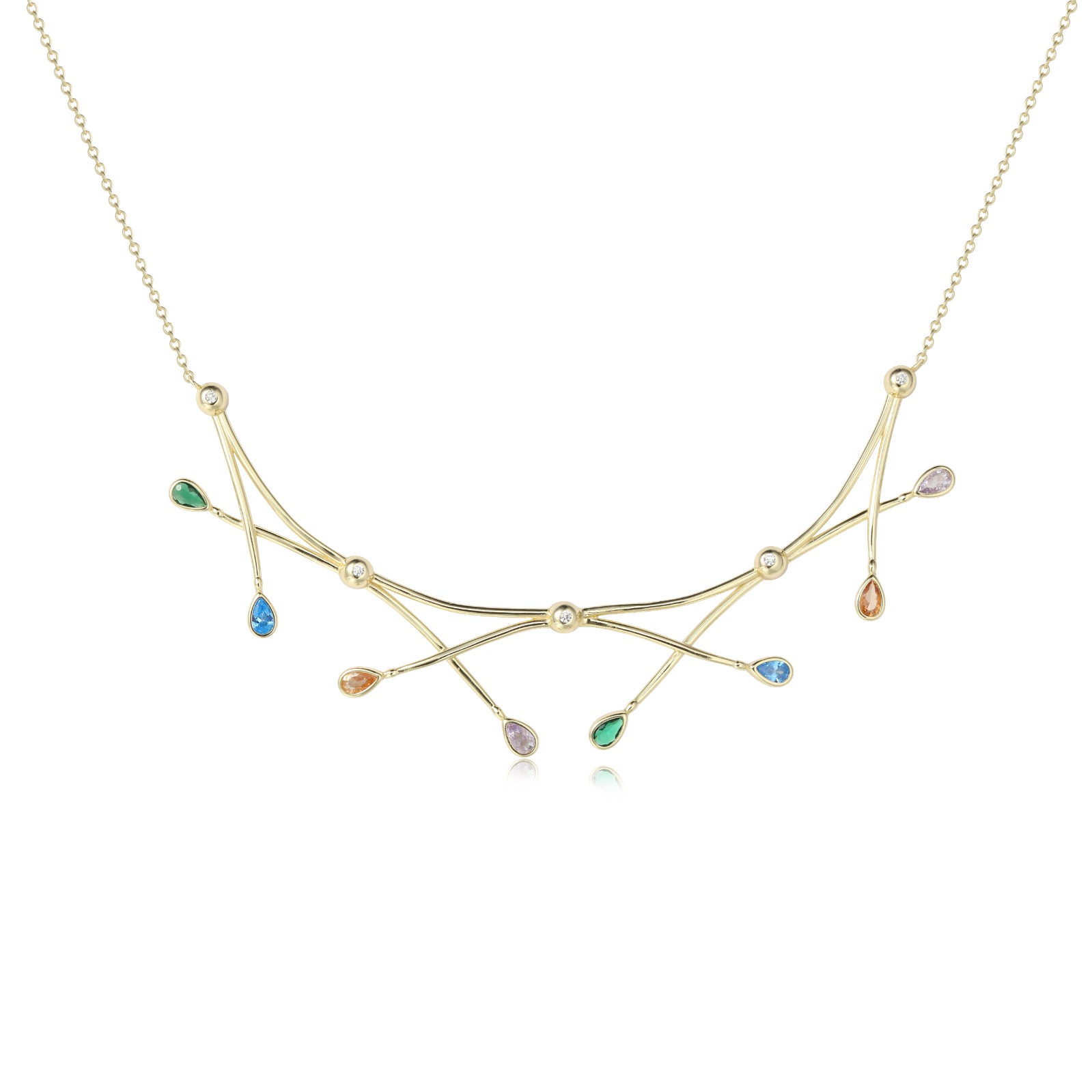 שרשרת איקסים פלטה בשילוב אבני חן צבעוניות